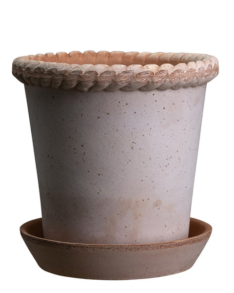 With a stylish, antique rose base featuring a distinctive lip and embossed rim, each Emilia Rosa pot has been fired at a high temperature, guaranteeing a durability that makes them frost resistant. The superlative quality of the clay provides aeration to the plant’s roots, enabling them to retain moisture and promise optimum growth conditions.